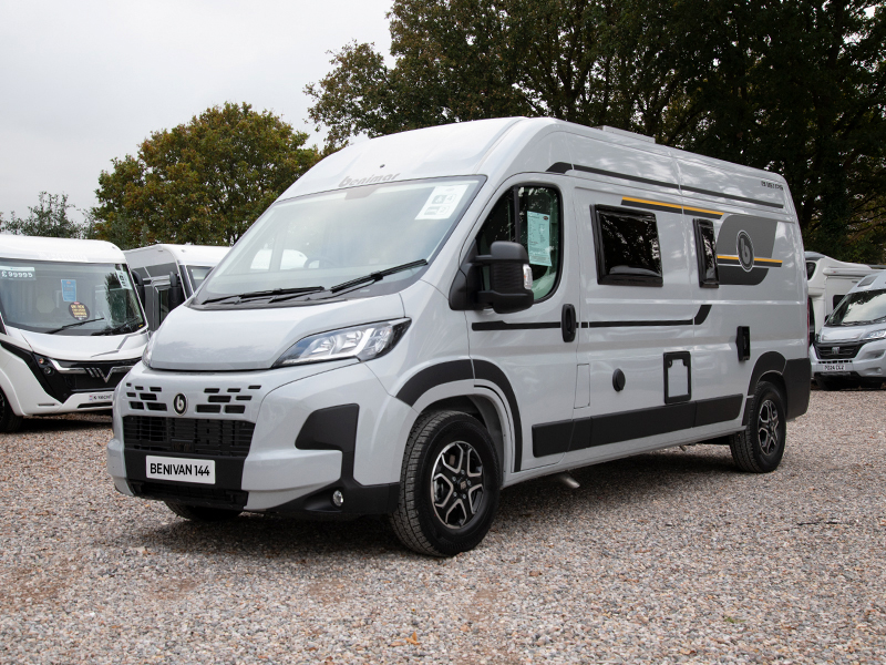 This Benimar Benivan 144 new motorhome is built on a Fiat Chassis and comes with an automatic 140bhp engine with 2 berths and 4 travelling seats. The motorhome layout consists of a fixed rear double bed with ample storage underneath, middle kitchen and compact washroom and front dinette. This motorhome is equipped with a drop down space saving sink, solar panel and is under 6m in length. Pop top Upgrade available.