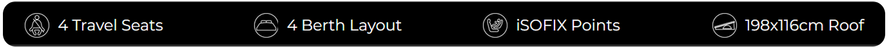 Powerful, clean and refined, Panama campervans feature Ford’s next generation engine with an automatic gearbox. Featuring Keyless entry and start, Speed sign recognition, Lane-keeping and driver alerts, Wrong way alert, Traction, Torque Vectoring & Trailer Sway Control, Electronic stability control (ESC) and LED headlights with static bending lights.