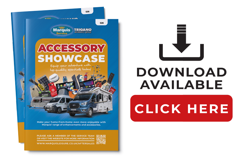 Explore our exclusive Marquis Service 'Accessory Showcase' Booklet, designed to inspire your next adventure. Packed with the latest must-have motorhome accessories and special offers, this guide is your go-to resource for upgrading your journey.